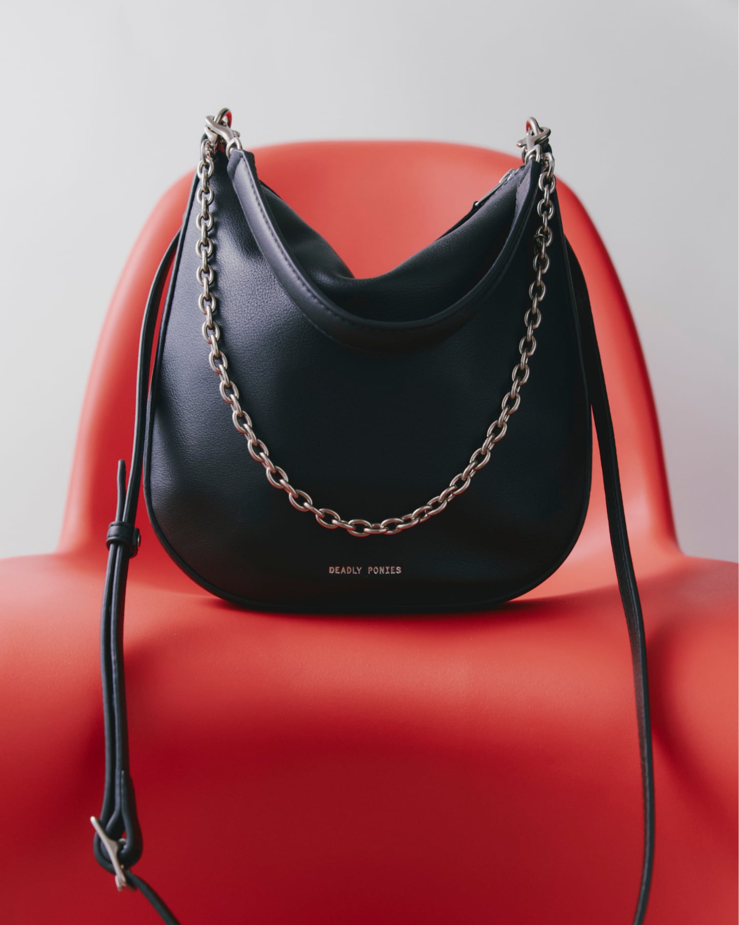 Mr Mini Chain Mail in Black is crafted from supple Calf Nappa and features an adjustable brass chain strap. With a full zip closure and back zip pocket, he offers refined practicality for everyday essentials.