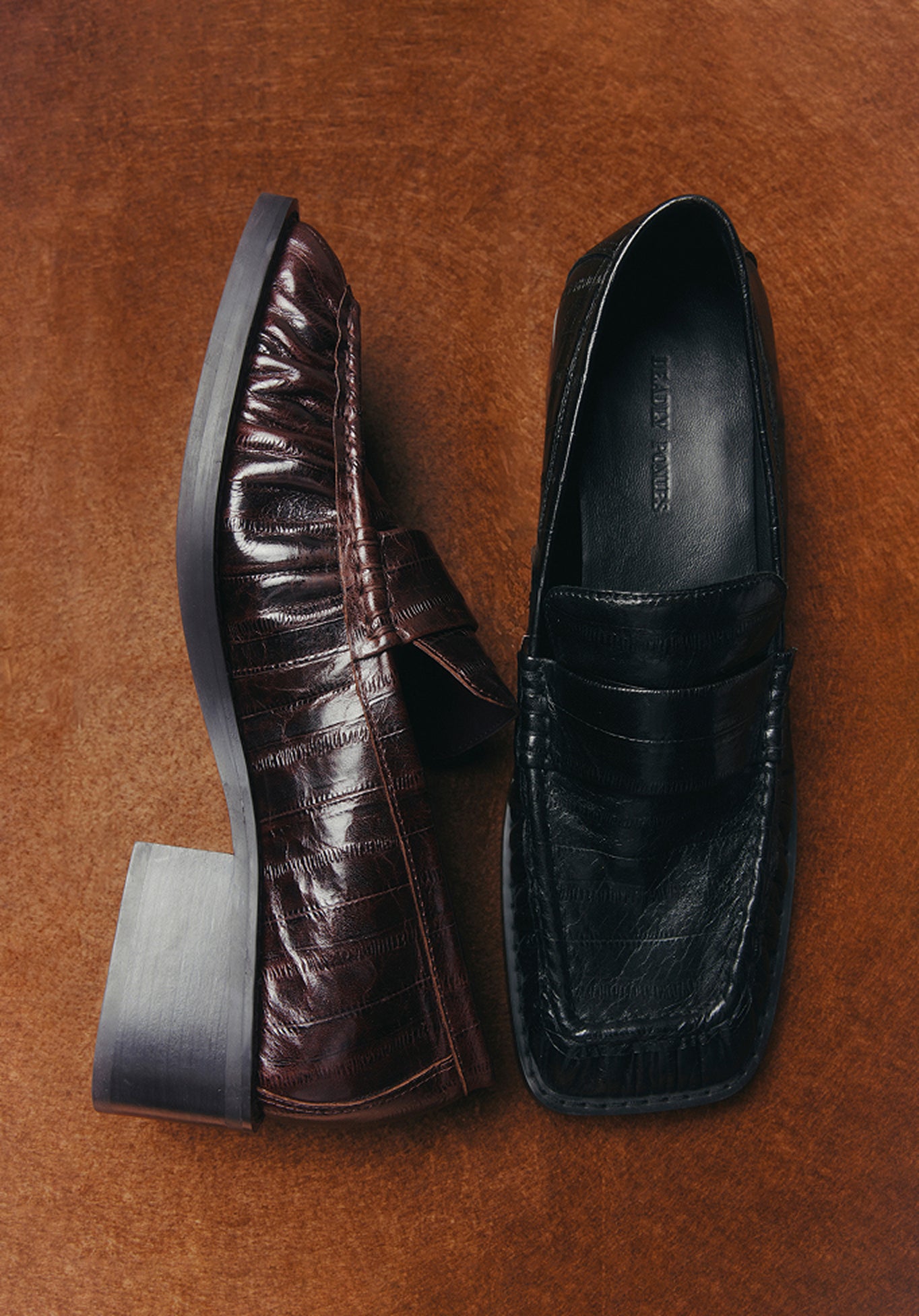Crafted from calf leather and embossed to emulate the look of eel skin, each piece is hand-stitched into panels to create subtle texture and a distinct finish.