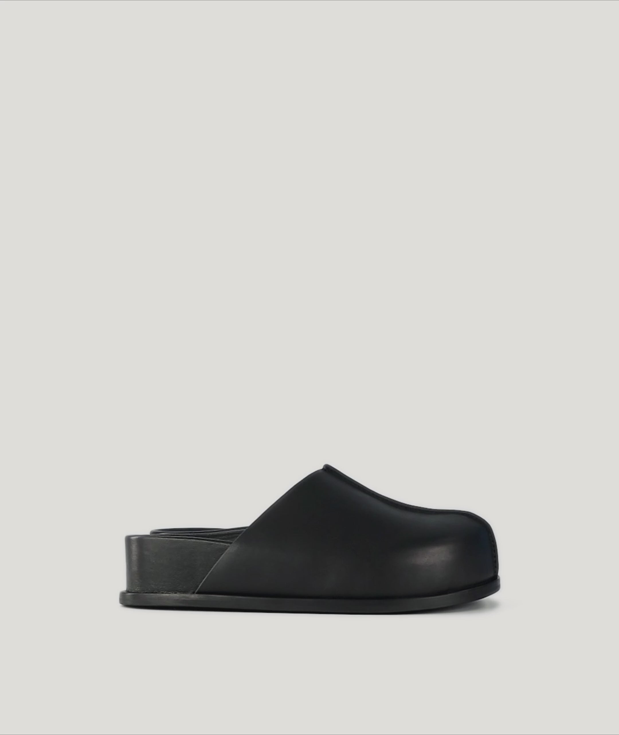 An iteration of the coveted Alastor Boot, Deadly Ponies' Alastor Slide is crafted with a moulded Calf Leather upper and a Lamb Nappa lining. He features a signature front seam detail, a 4cm platform footbed, and a rubber sole for comfort and longevity.