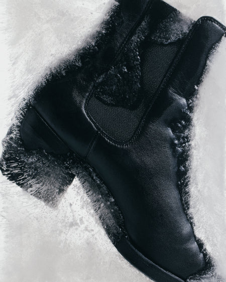 Gloss Finished Calf Nappa Upper, Lamb Nappa Lining, Rubber Sole, Black Finish Brass Hardware.