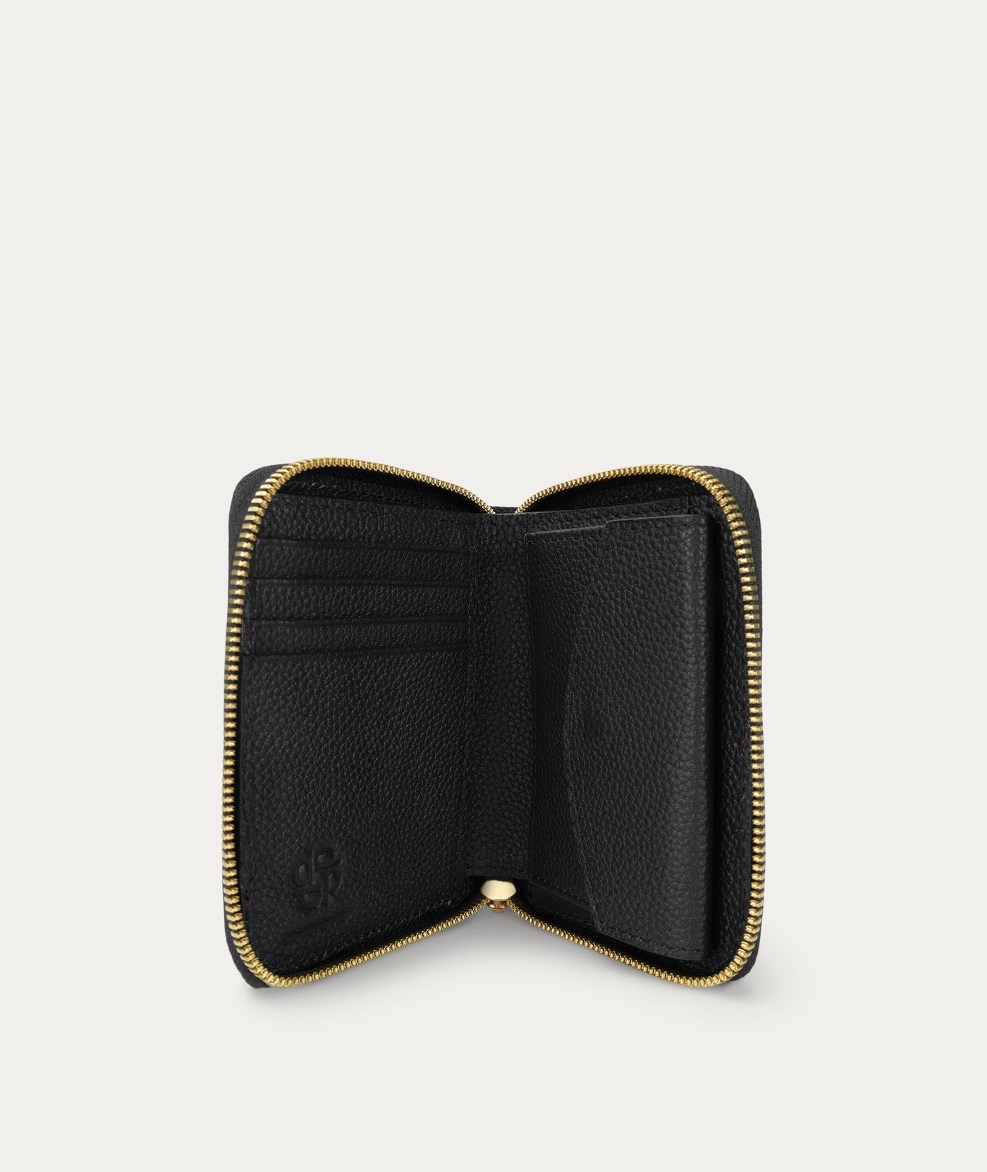 Gold foil logo-embossment on front.