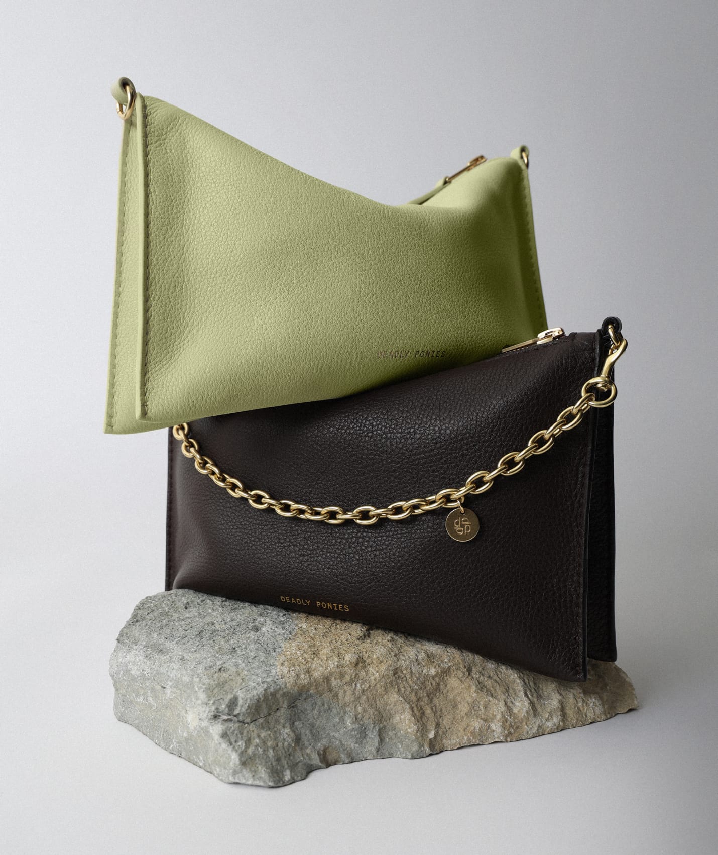 Intricately crafted from a single piece of buttery Calf Nappa in Mud, Mr Siamese is defined by his streamlined silhouette. With a detachable solid brass chain and adjustable strap, he transitions seamlessly from clutch to shoulder or crossbody wear.